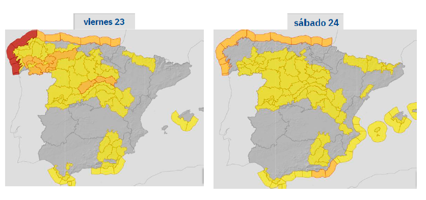 Estos son los mapas de avisos previstos por condiciones adversas: